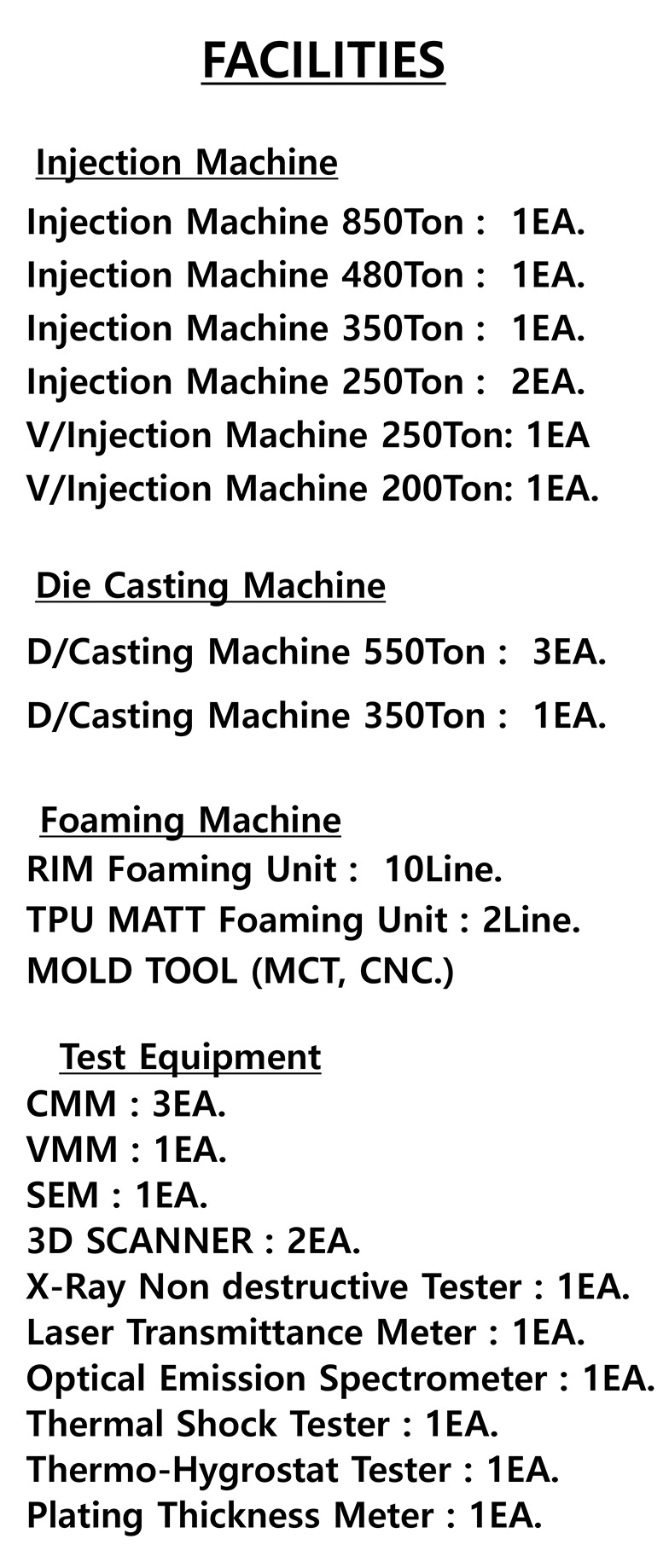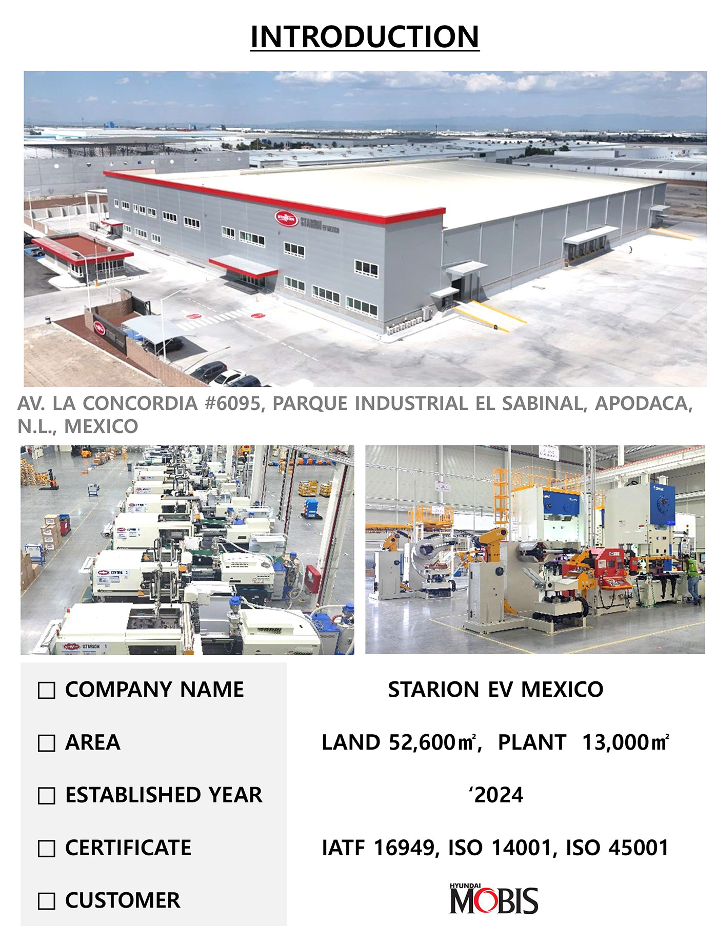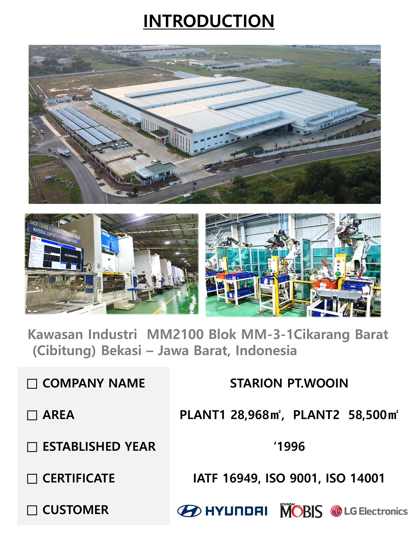 STARION ILWOO supports the development/production of automobile parts (injection, die casting, sheet metal, battery parts) and overseas subsidiaries in Starion Group
